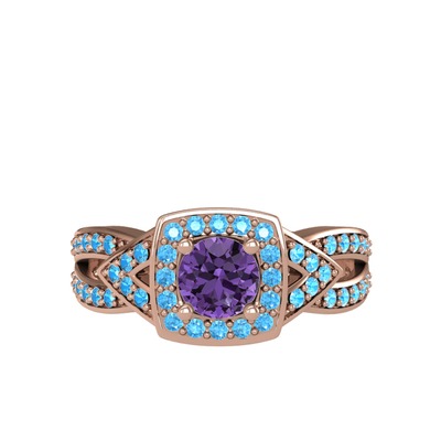 Ametist ve akuamarin 14 ayar rose altın yüzük
