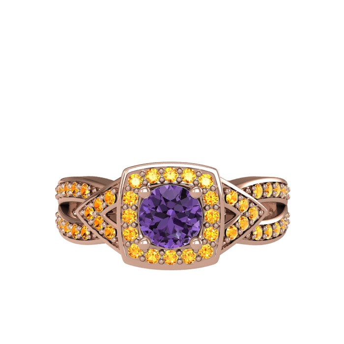 Ametist ve sitrin 18 ayar rose altın yüzük