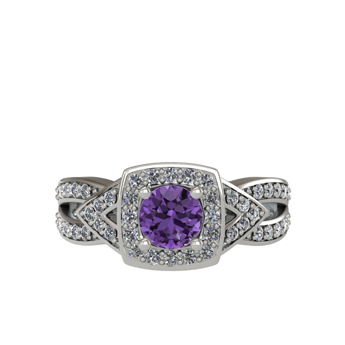 Ametist ve swarovski 14 ayar beyaz altın yüzük