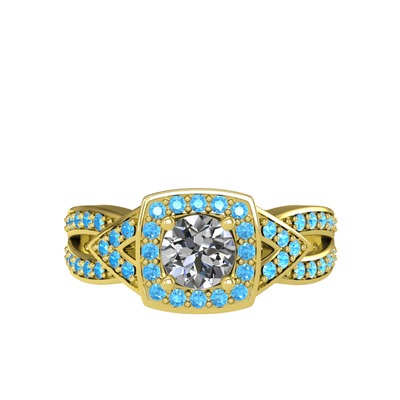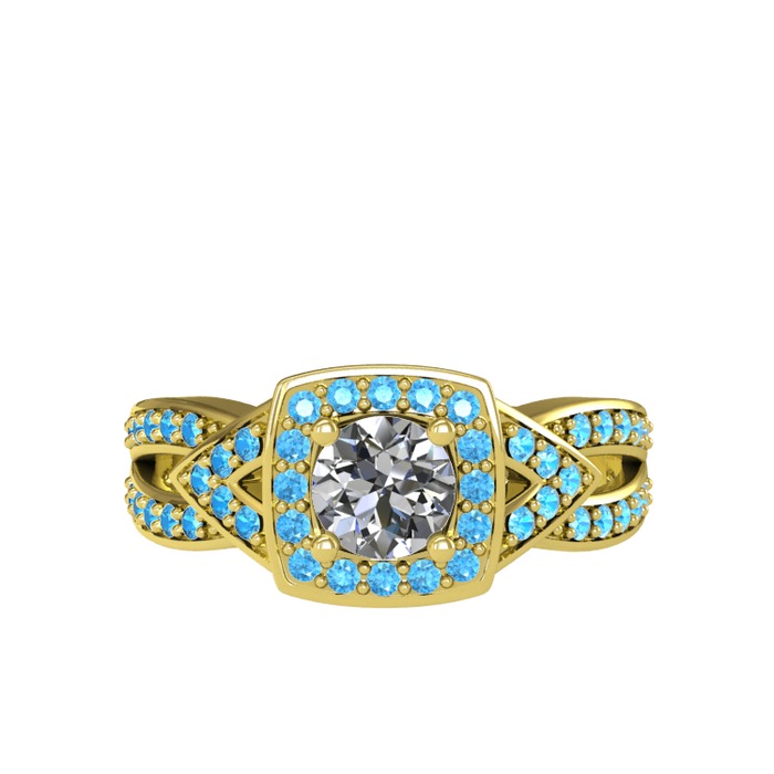 Beyaz zirkon ve akuamarin 14 ayar altın yüzük