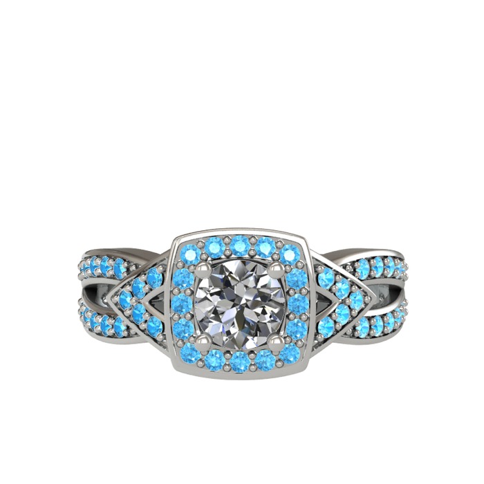 Beyaz zirkon ve akuamarin 8 ayar beyaz altın yüzük