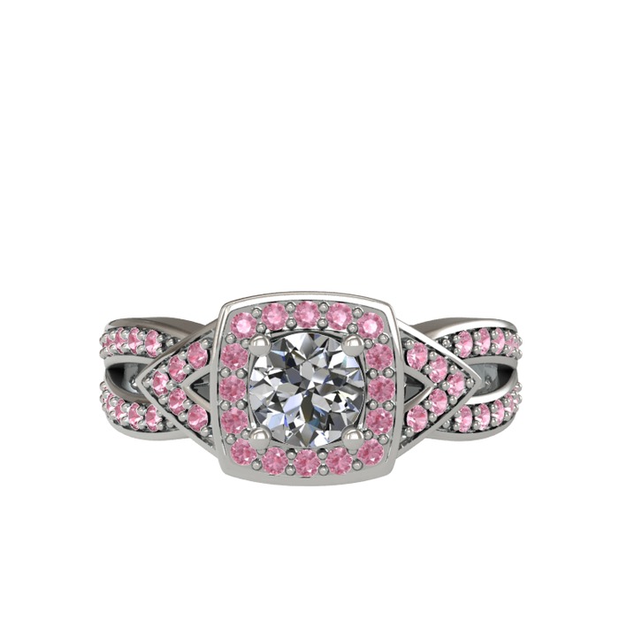 Beyaz zirkon ve pembe kuvars 14 ayar beyaz altın yüzük