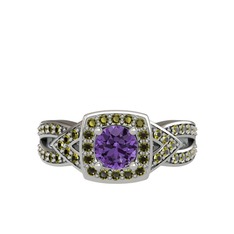 Beyaz zirkon ve rodolit garnet 18 ayar beyaz altın yüzük