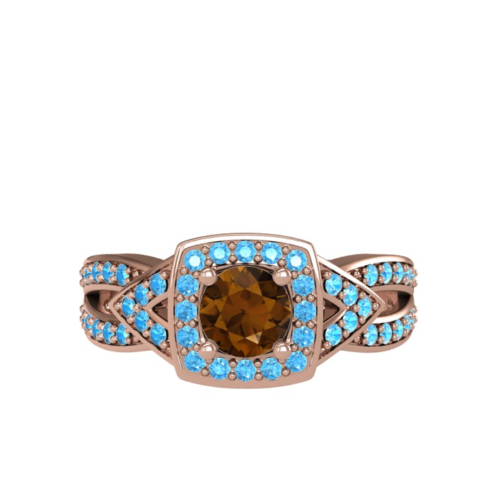 Dumanlı kuvars ve akuamarin 8 ayar rose altın yüzük