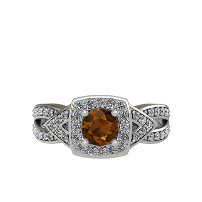 Dumanlı kuvars ve pırlanta 14 ayar beyaz altın yüzük (0.414 karat)