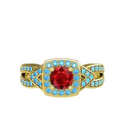 Garnet ve akuamarin 925 ayar altın kaplama gümüş yüzük