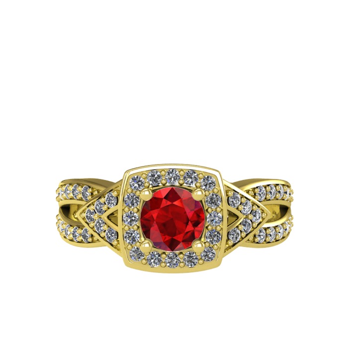 Garnet ve beyaz zirkon 8 ayar altın yüzük