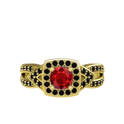 Garnet ve siyah zirkon 18 ayar altın yüzük