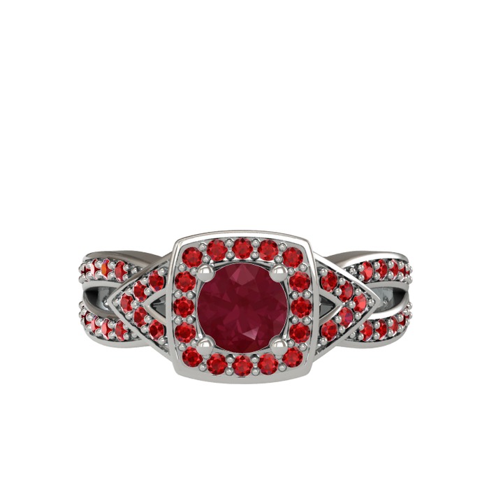 Kök yakut ve garnet 14 ayar beyaz altın yüzük