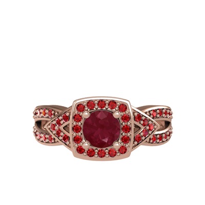 Kök yakut ve garnet 14 ayar rose altın yüzük