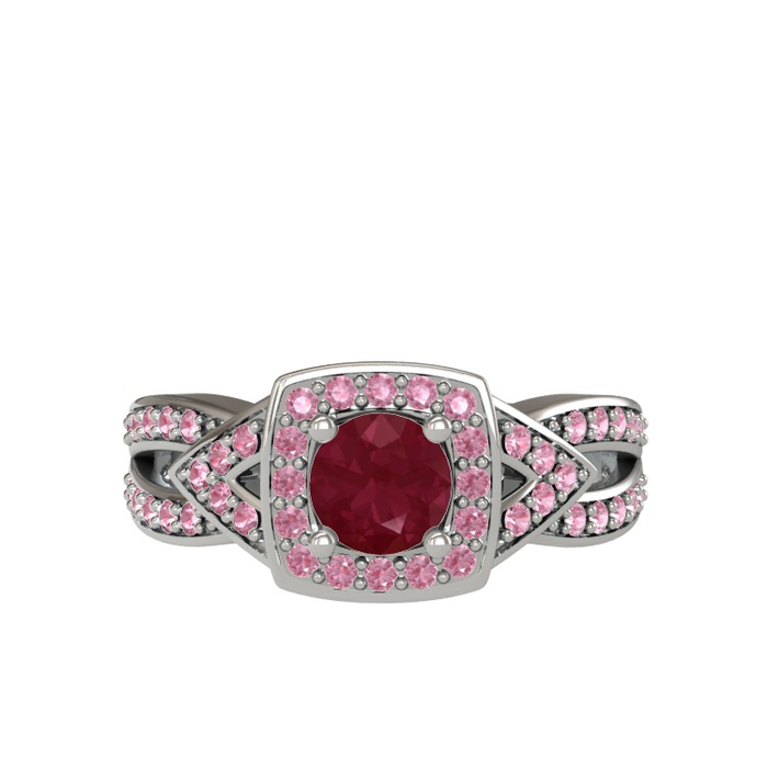 Kök yakut ve pembe kuvars 14 ayar beyaz altın yüzük