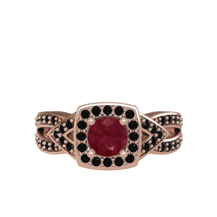 Kök yakut ve siyah zirkon 8 ayar rose altın yüzük