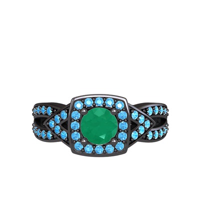 Kök zümrüt ve akuamarin 925 ayar siyah rodyum kaplama gümüş yüzük