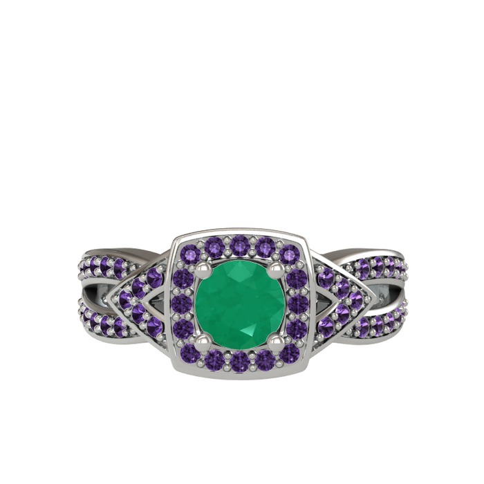 Kök zümrüt ve ametist 18 ayar beyaz altın yüzük