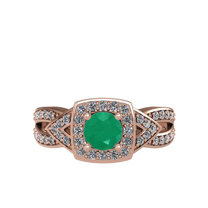 Kök zümrüt ve beyaz zirkon 925 ayar rose altın kaplama gümüş yüzük