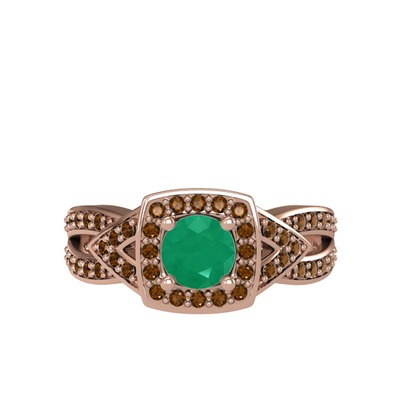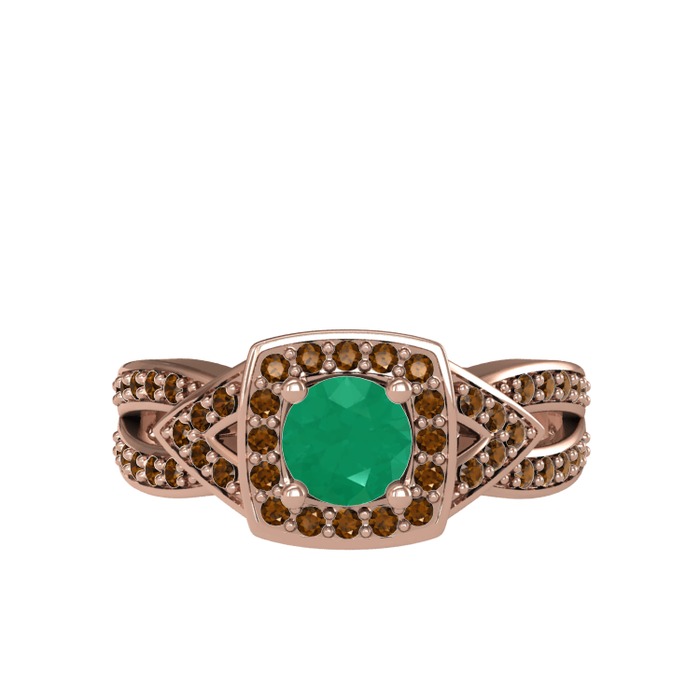 Kök zümrüt ve dumanlı kuvars 925 ayar rose altın kaplama gümüş yüzük