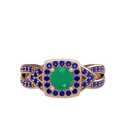 Kök zümrüt ve lab safir 8 ayar rose altın yüzük