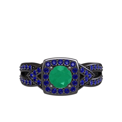 Kök zümrüt ve lab safir 925 ayar siyah rodyum kaplama gümüş yüzük