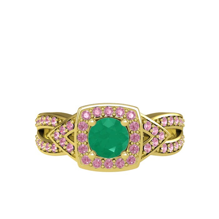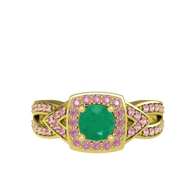 Kök zümrüt ve pembe kuvars 925 ayar altın kaplama gümüş yüzük