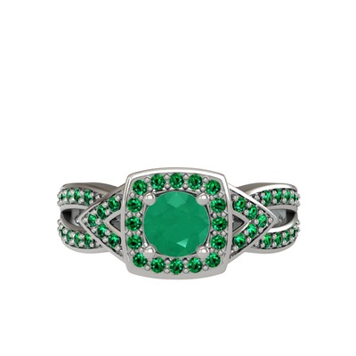 Kök zümrüt ve yeşil kuvars 14 ayar beyaz altın yüzük