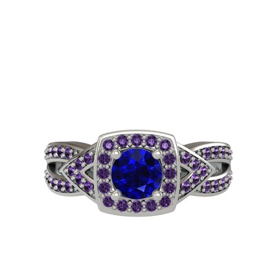 Lab safir ve ametist 18 ayar beyaz altın yüzük