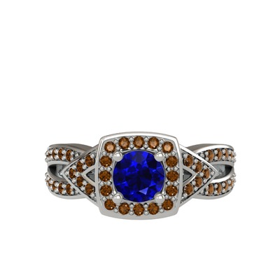 Lab safir ve dumanlı kuvars 8 ayar beyaz altın yüzük