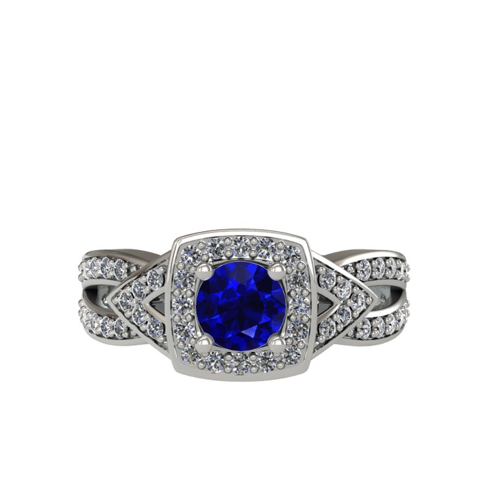 Lab safir ve pırlanta 18 ayar beyaz altın yüzük (0.414 karat)