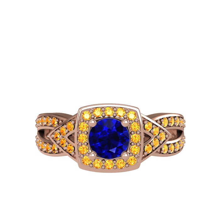 Lab safir ve sitrin 18 ayar rose altın yüzük