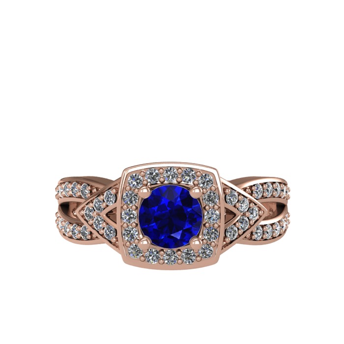 Lab safir ve swarovski 14 ayar rose altın yüzük