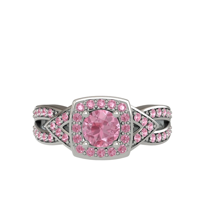 Pembe kuvars 18 ayar beyaz altın yüzük