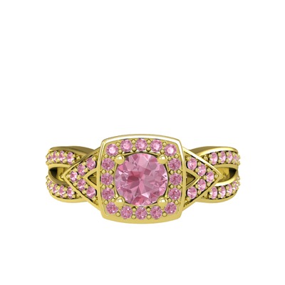 Pembe kuvars 925 ayar altın kaplama gümüş yüzük