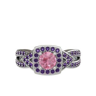 Pembe kuvars ve ametist 18 ayar beyaz altın yüzük