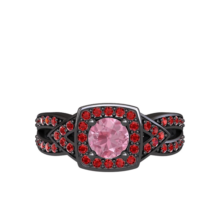 Pembe kuvars ve garnet 925 ayar siyah rodyum kaplama gümüş yüzük