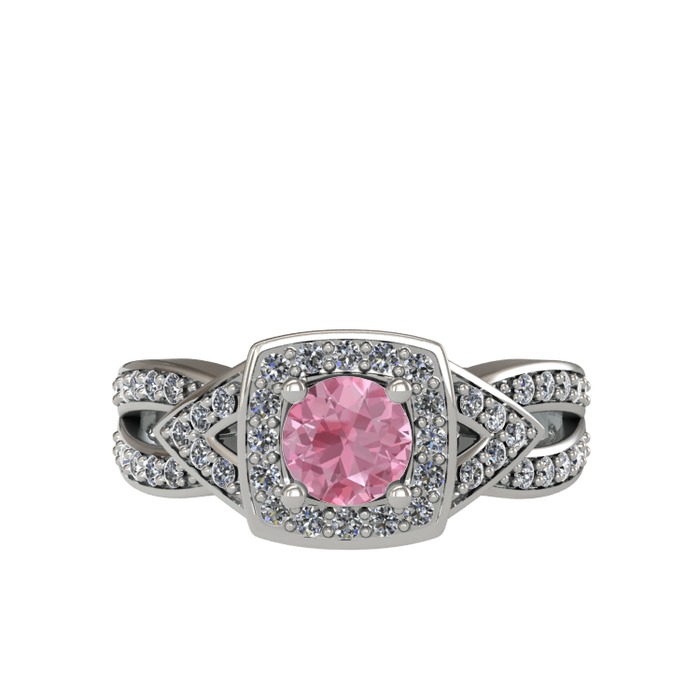 Pembe kuvars ve pırlanta 925 ayar gümüş yüzük (0.414 karat)