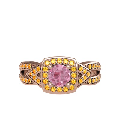 Pembe kuvars ve sitrin 14 ayar rose altın yüzük