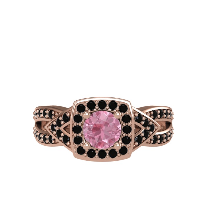 Pembe kuvars ve siyah zirkon 18 ayar rose altın yüzük