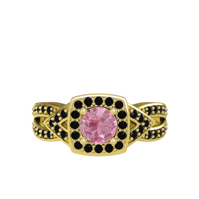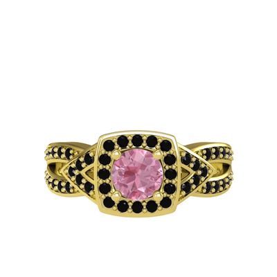 Pembe kuvars ve siyah zirkon 8 ayar altın yüzük