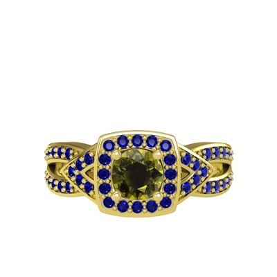 Peridot ve lab safir 14 ayar altın yüzük