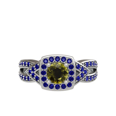 Peridot ve lab safir 14 ayar beyaz altın yüzük