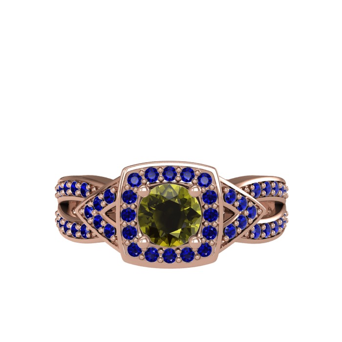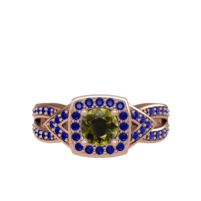 Peridot ve lab safir 8 ayar rose altın yüzük