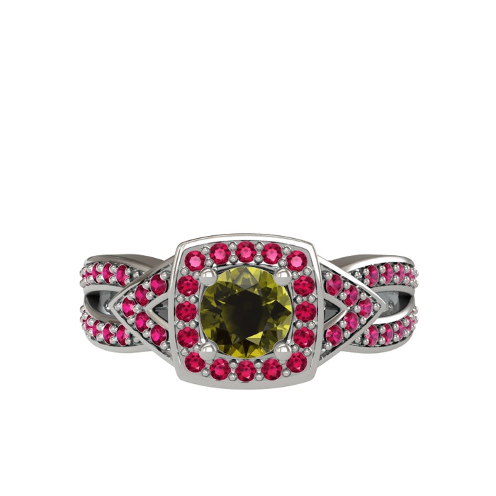 Peridot ve rodolit garnet 18 ayar beyaz altın yüzük