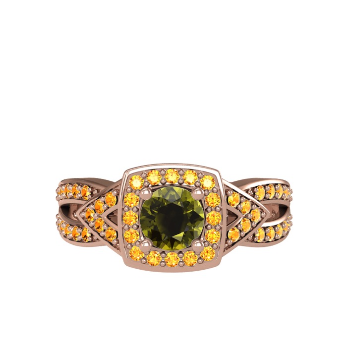 Peridot ve sitrin 14 ayar rose altın yüzük