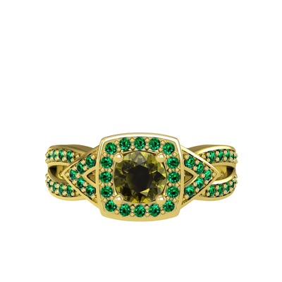 Peridot ve yeşil kuvars 8 ayar altın yüzük
