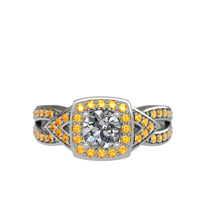 Pırlanta ve sitrin 18 ayar beyaz altın yüzük (0.5 karat)
