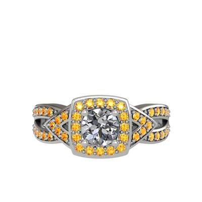 Pırlanta ve sitrin 925 ayar gümüş yüzük (0.5 karat)