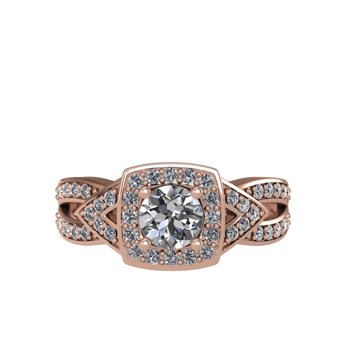 Pırlanta ve swarovski 18 ayar rose altın yüzük (0.5 karat)