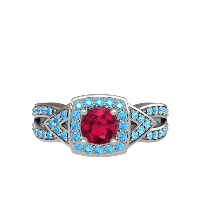 Rodolit garnet ve akuamarin 18 ayar beyaz altın yüzük