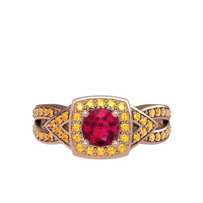 Rodolit garnet ve sitrin 8 ayar rose altın yüzük