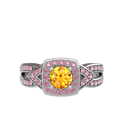 Sitrin ve pembe kuvars 925 ayar gümüş yüzük