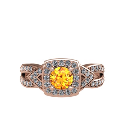 Sitrin ve pırlanta 14 ayar rose altın yüzük (0.414 karat)